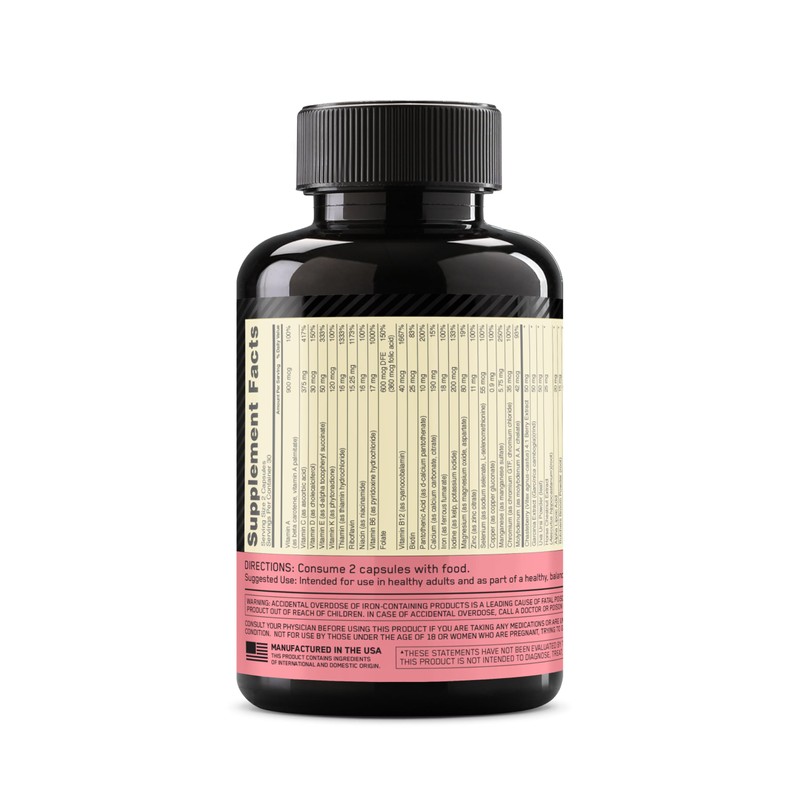 Support your immune system and overall health with Optimum Nutrition Opti-Women Daily Multivitamin specially formulated for active women. This women's daily multivitamin contains 23 essential vitamins and minerals, including Vitamin C, Zinc, Vitamin D, Vitamin E and Vitamin B12, to support your immune system, support cellular energy and metabolism, and promote overall wellness. Optimum Nutrition Opti-Women daily multivitamin for women includes botanical extracts that can be built on through consumption of a healthy, balanced diet, plus iron and folate. Each bottle contains a 30-day supply of 60 Opti-Women Multivitamin with Iron tablets to provide immune support and provide nutrients active women need. Take one 2-tablet serving with food each day. There's more of you in you, waiting to be unlocked. Optimum Nutrition has been trusted to provide the high quality in post-workout recovery, pre-workout energy, and on-the-go sports nutrition for over 35 years and in 90+ countries.