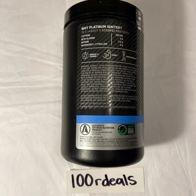 Item: OPTIMUM NUTRITION PREWORK POWDER PLATINUM IGNITER Blue Raspberry Freeze 2/26