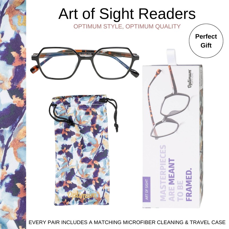 OPTIMUM OPTICAL Blue Light Filtering Scratch-Resistant Lens Geometric Frame Magnifying Reading Glasses - Art of Sight, +2.25