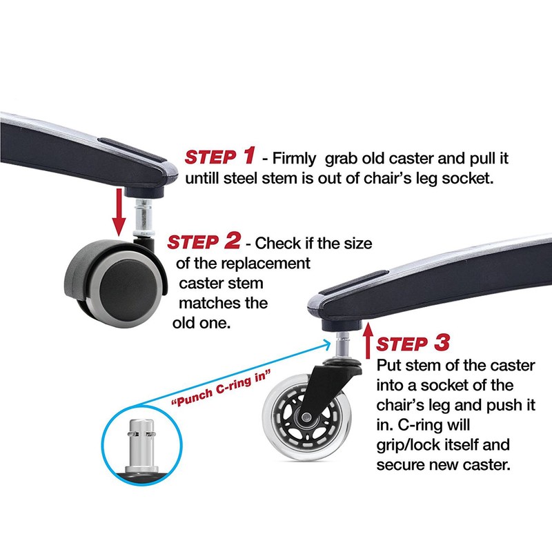 -Compatible with major brands - standard stem size: 7/16" (11mm) diameter x 7/8" (22mm) length. and great for replacing cheap plastic chair rollers on any chair with swivel casters.
