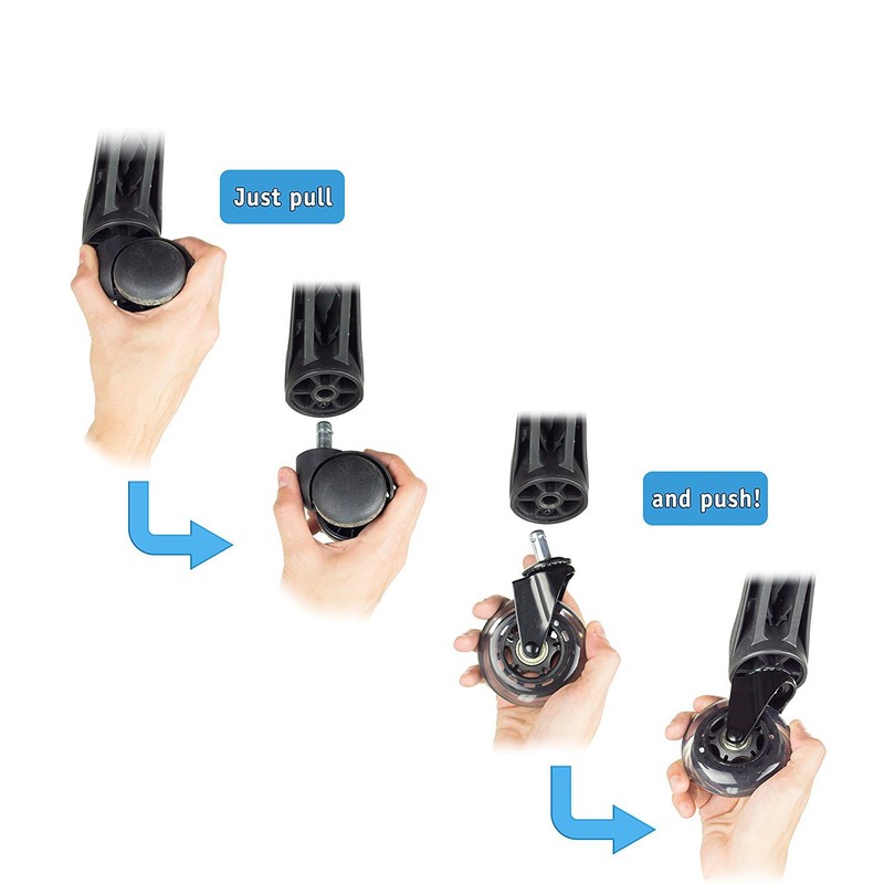\- Premium materials and rock-solid construction make our desk chair casters the strongest in their class supporting 650 lbs per chair. \- Our replacement wheel casters are not just good looking; they are gorgeous with their beautiful transparent polyurethane wheels which roll effortlessly on any surface. -These hot 3-inch wheel rollers are an ideal upgrade to any executive chair, armless office chair, dining chair, kitchen stool, computer chair, video gaming chair, bar stool, and all others on wheels.