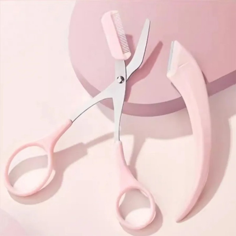 (Optional Pink Set) Premium Eyebrow Grooming Set Pink Eyebrow Knife Eyebrow Scissors