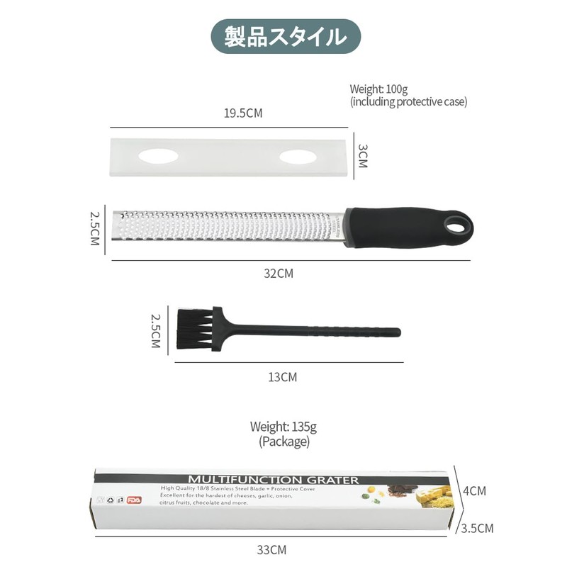 OptiPro Grater Cheese Sharpener Julienne Garlic Grater Daikon Grater Ginger Grater Protective Cover with Cleaning Brush (Black)
