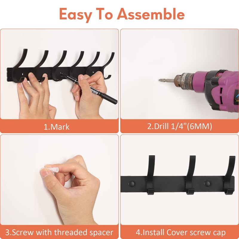- 【Anti-Scratch Coat Hooks】 All hooks are rounded and smooth, it will never scratch your coats/scarves/towels etc. The 3 mounting screws are covered by color matched covers and the classic black color will easily blend in with your interior decor