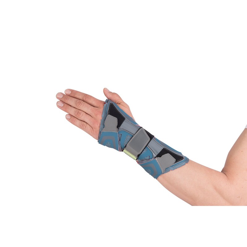 OPTIVOhand for stabilization and partial immobilization of the wrist can be adapted very well to the swelling condition of the hand. The internal, adjustable palmar reinforcement rail allows easy use of right and left hand applications. The skin-friendly padding material ensures a high wearing comfort. In addition to increased stability to ensure treatment success and time savings. OPTIVOhand also comes with a modern and attractive design. In the development of OPTIVOhand , it was emphasized that the product in terms of stability is equivalent to the common hand orthoses but is also easy and comfortable to wear. OPTIVOhand is characterized by a light and slim design, but still offers a high stability for the injured wrist. Due to the middle stabilizing band, the orthosis can be adapted very well to different swelling states without losing stability. In addition, the integrated dorsal reinforcement rails together with the two plastic guides provide additional support.
