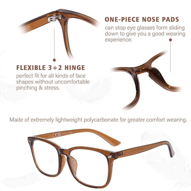 - EVERYDAY UNISEX READERS: Made of light and flexible polycarbonate frame material for durability and comfortable long-time wearing. Come to complete your on-trend look with the matching blue light blocking reading glasses.