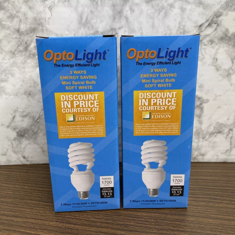 Sold in sets of 2. NEW OptoLight 3 way light bulbs.