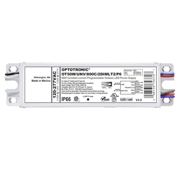OPTOTRONIC OT 50W UNV 800C 2DIMLT2 P6 Constant Current Programmable Outdoor LED Driver (*2743YM / 79370)