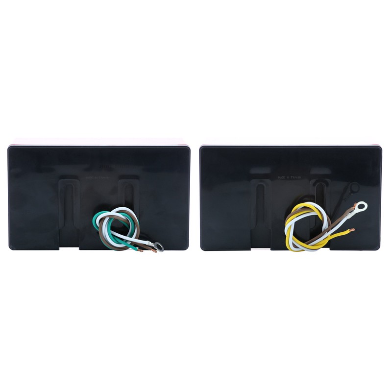 This is a Optronics Red Rectangular LED Combination Tail Light Kit which includes One Passenger Side and One Driver Side Lights and a 25 ft. harness and a Black License Plate Bracket, Stainless steel mounting hardware. These light are designed for marine application and is a sealed waterproof construction with a universal mount. It is hard wired, with separate ground wire with stainless steel hardware.