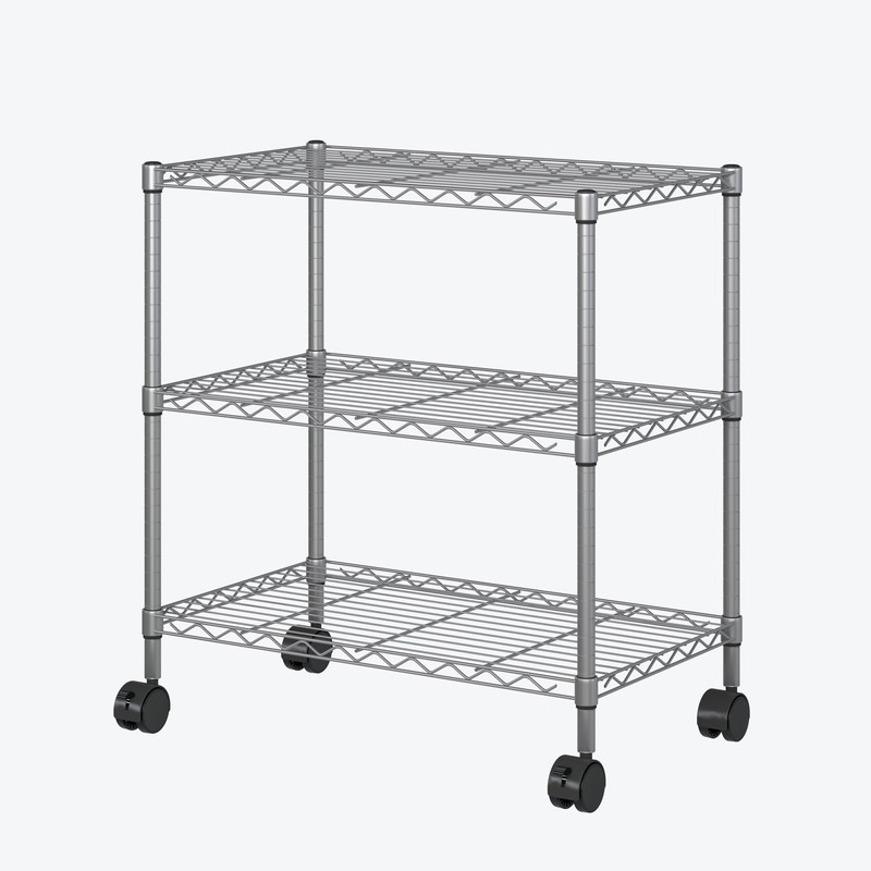 - Lockable casters - This sturdy and durable three-tier storage shelving unit is made of high-quality steel and is equipped with 4 durable universal casters. Additionally, it is also provided with 2 lockable casters to keep it in place when you don't want it to move.