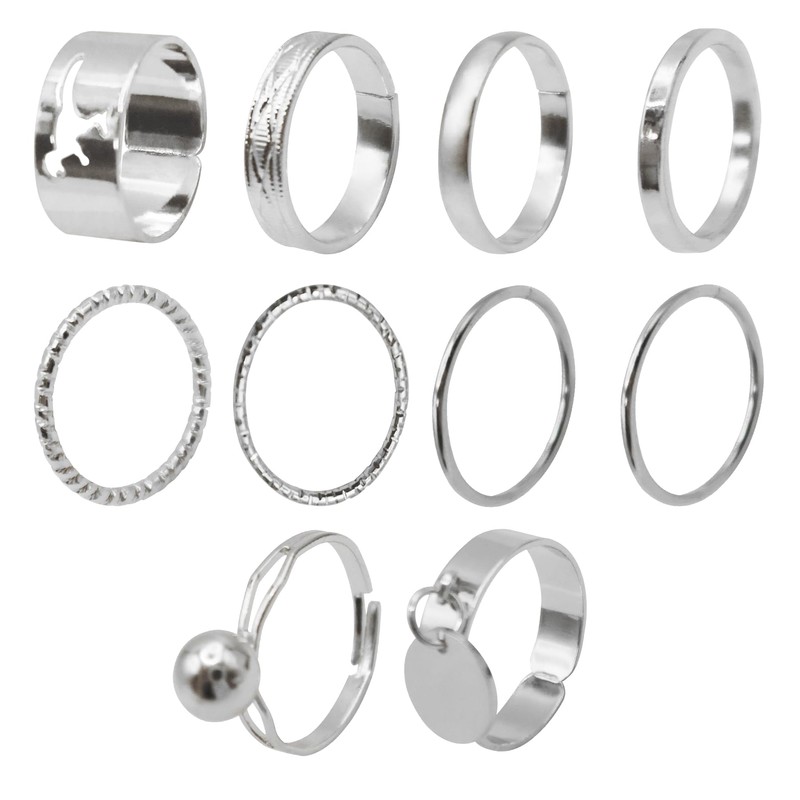 OPUHOHR 10 Pieces Silver Trendy Stacking Rings Set, Open Adjustable Rings for Women Girls, Midi Ring Twist Eternity Bands, Non-precious metal, No Gemstone