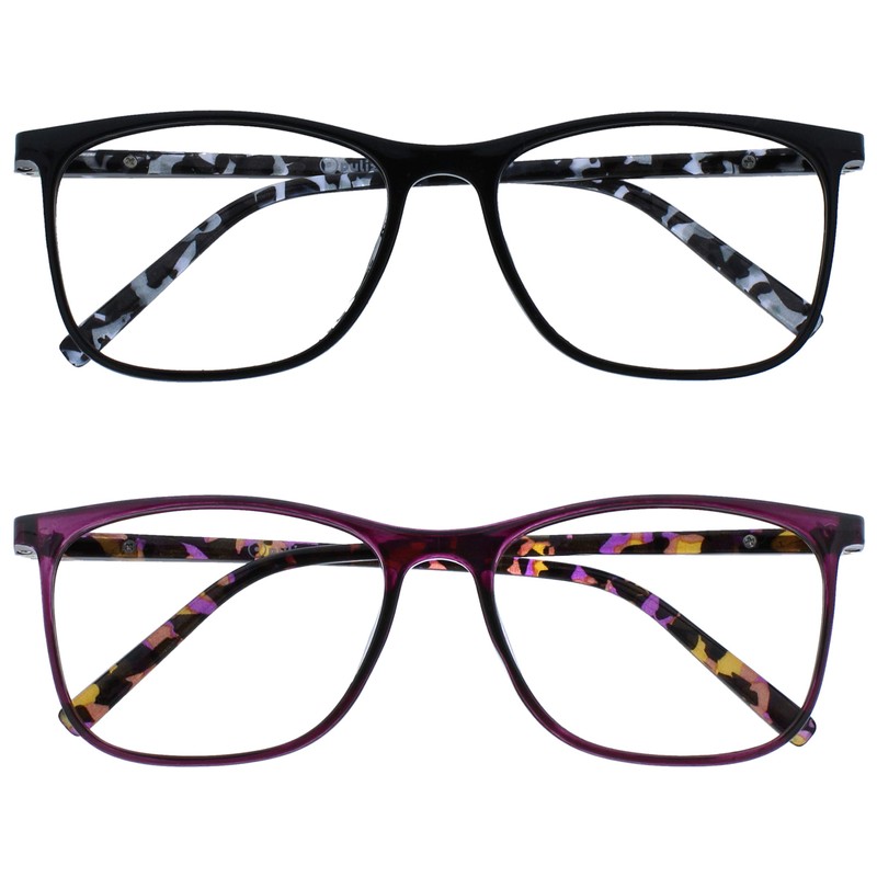 OPULIZE Arc 2 Pack Large Reading Glasses Black Purple Patterned Mens Womens RR66-15 +3.00
