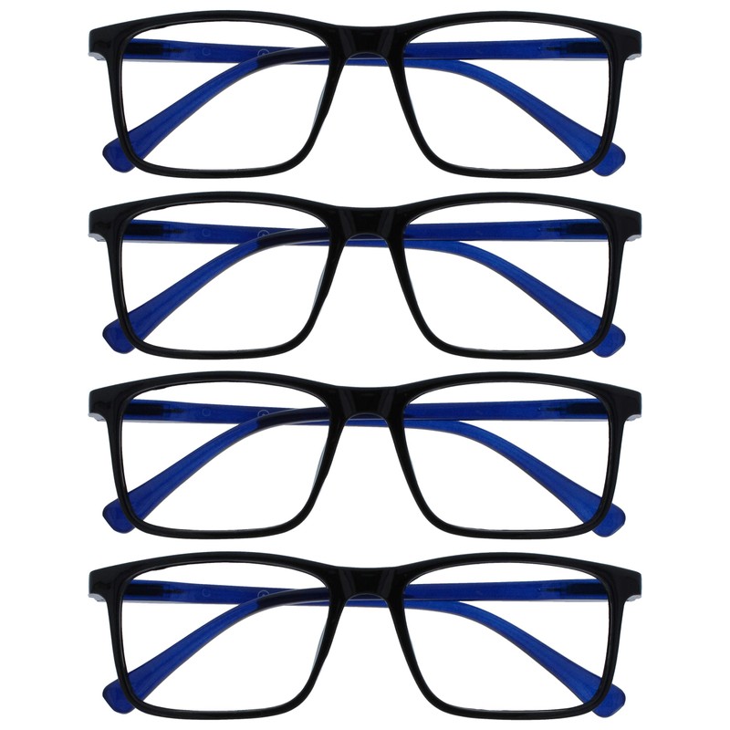 OPULIZE Ink MMMM4-1 -2.00 Long Distance Glasses Pack of 4 Large Rectangular Frame Spring Hinges Scratch-Resistant Black Men Women
