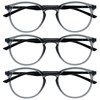 OPULIZE Met - Reading Glasses Blue Light Blocking 3 Pack Slim Round Frame Spring Hinges Improve Sleep Computer Gaming Anti-Reflective Transparent Grey Mens Womens BBB60-7 +1.00