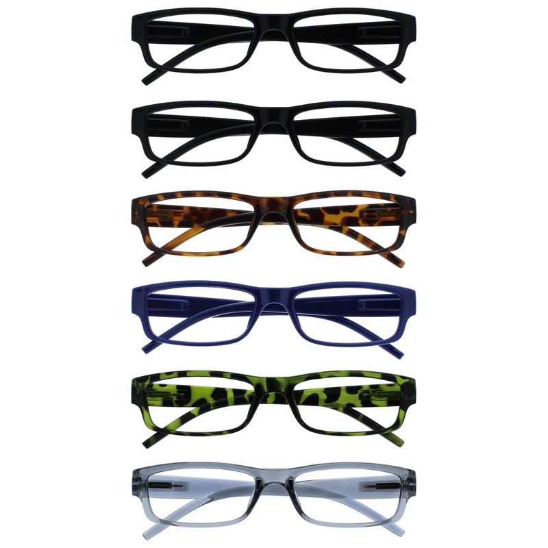 OPULIZE OPULIZE ACE Reading Glasses for Women Men, Lightweight Comfortable Narrow Rectangular Frame with Spring Hinges, Scratch Resistant, Black Brown Blue Green Grey +3.50 (Pack of 6)