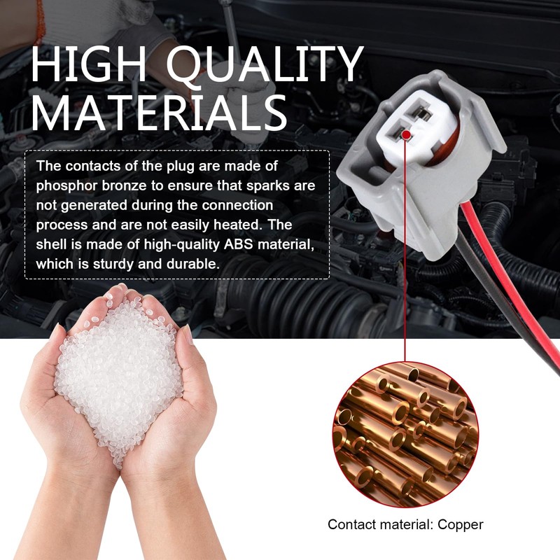 - High-Quality Materials: This fuel injector connector is constructed from a high-quality ABS shell and copper metal. It is compact, lightweight, and durable, with high mechanical strength. It offers excellent electrical conductivity, waterproofing, heat dissipation, electrical insulation, and impact resistance. It is also heat-resistant and durable, ensuring long-term use.