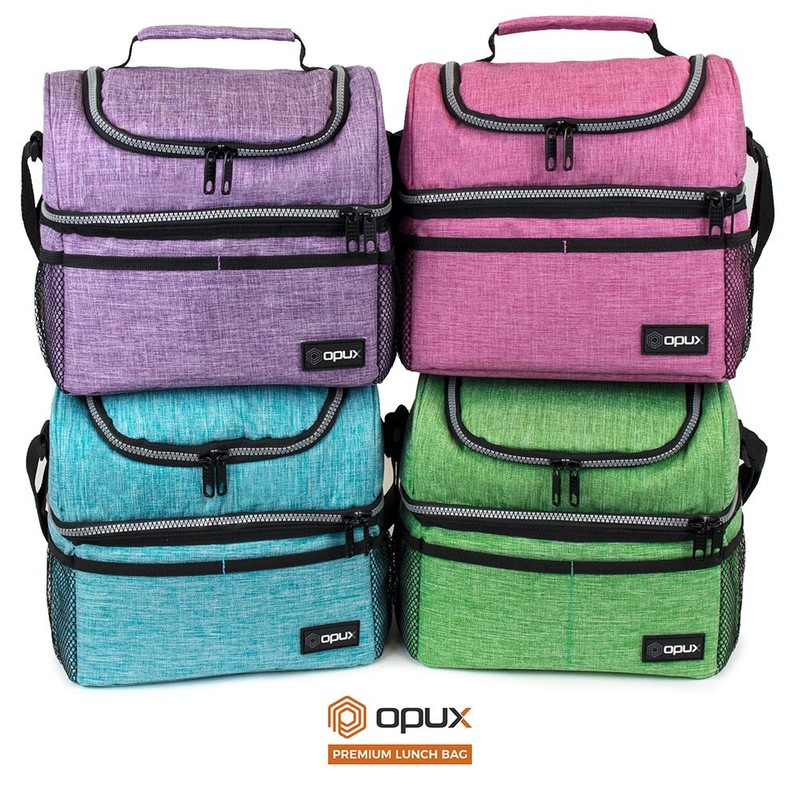 opux Insulated Dual Compartment Lunch Bag for Men, Women | Double Deck Reusable Lunch Box Cooler with Shoulder Strap, Leakproof Liner | Medium Lunch Pail for School, Work, Office (Aqua Turquoise)