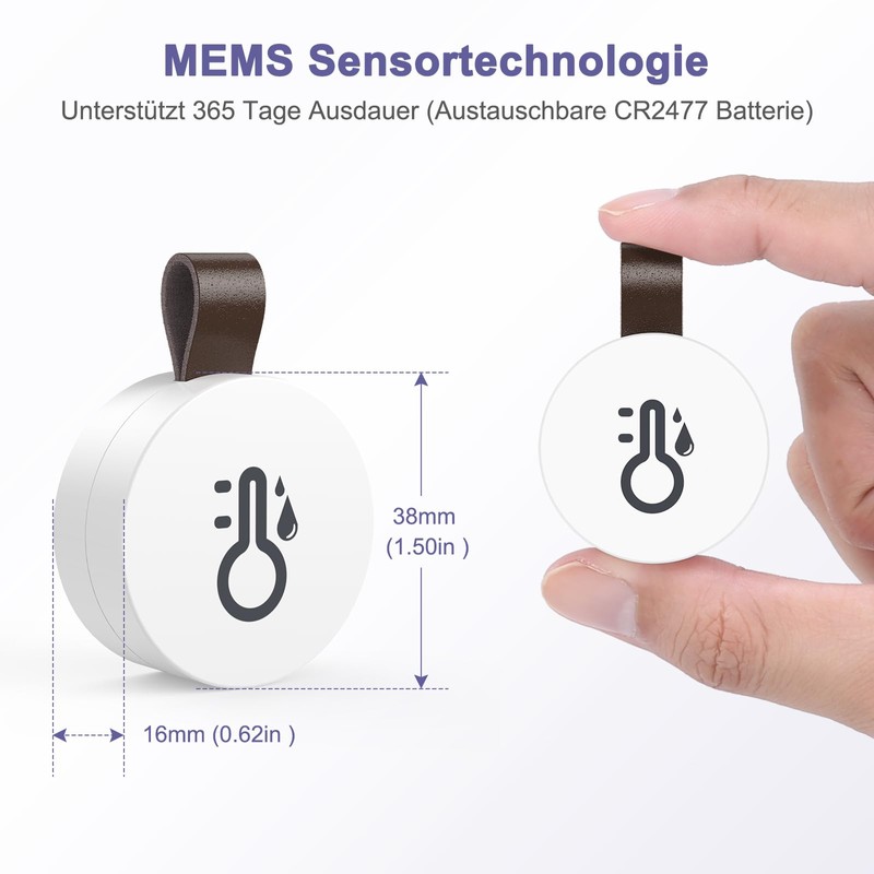 - Compact and practical: Our wireless thermometer hygrometer has a user-friendly suspension design, is small (1.5 x 1.5 x 0.62 inches) and lightweight, so it can be used almost anywhere. The CR2477 battery has a lifespan of about one year and can be easily replaced in the event of a power failure.