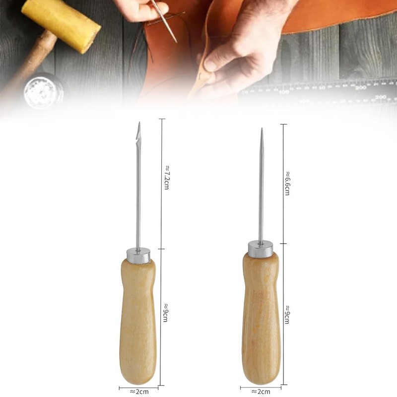 - [Package Included]:You will get 2 pieces wooden awl molds. The leather sewing awl helps you poke holes in the leather to prepare for sewing. The tailoring awl is easy to use, very simple and labor-saving, making it a practical sewing tool. Beginners and DIY enthusiasts.