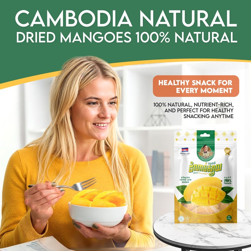 OR OR Cambodia Organic Dried Mango No Sugar Added - 70g Dry Mango Slices in Resealable Bag - Soft Juicy Dried Fruit Snacks for Baking, Yogurt & Kids Treats-Vegan, Non-GMO, Preservative Free