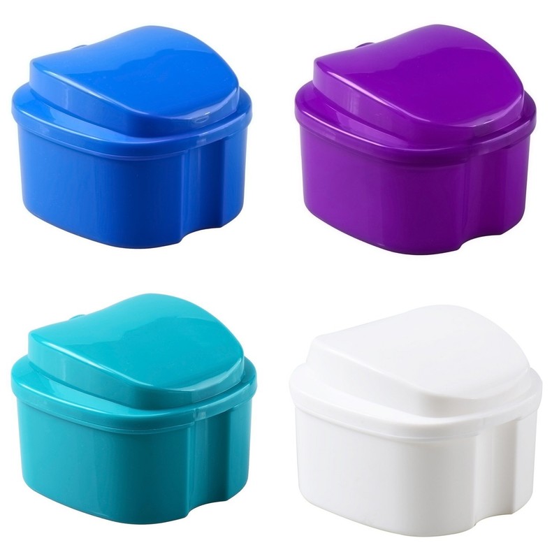 ORAfix Complete Care Premium Denture Bath no Mess, No Spill Strainer. Ideal for daily cleaning or overnight soaking give your dentures a bath. Durable plastic case, for travel comes with separate vented tray insert. Handle on tray insert lets you keep your hands dry during removal. Color: Colors may vary.