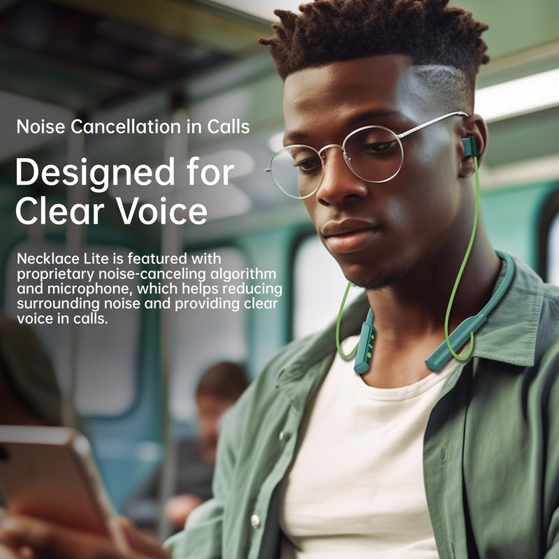 - 【 Clear Voice in Calls 】 The Oraimo Necklace Lite headphones are equipped with a state-of-the-art noise-canceling algorithm and a high-quality microphone. This powerful combination significantly reduces ambient noise, ensuring that your voice is heard clearly during calls. Whether you're in a bustling cafe or a noisy street, these headphones facilitate seamless communication, making every conversation a breeze.
