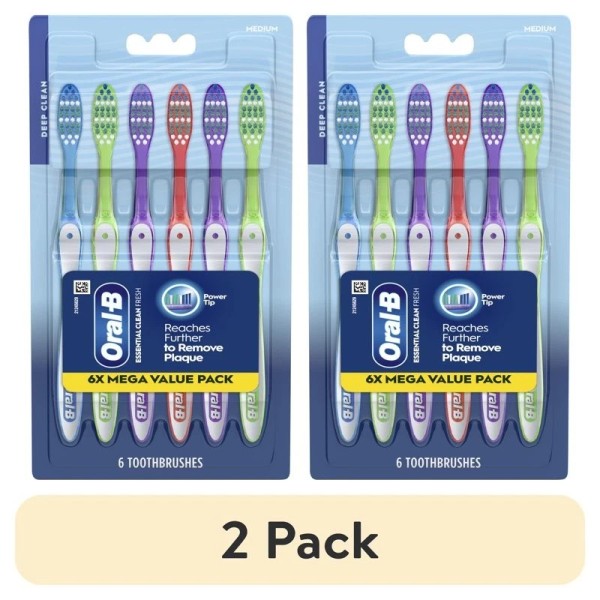 Oral-B (2 pack) Oral-B Essential Clean Toothbrush, Medium, Gentle On Gums & Teeth, 6 Co