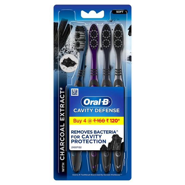 Oral B Cavity Defense 123 Soft Black Toothbrush (Pack of 4) - India - Assorted Colours