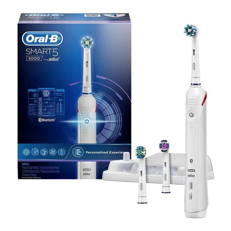 The Oral-B Smart 5000 Electric Toothbrush has a reliable battery life and various cleaning modes, making it a great solution for maintaining your oral health with minimal hassle. The Oral-B Smart 5000 Electric Toothbrush delivers dynamic rotating and oscillating movements to help remove plaque and stain build-up on your teeth with ease. With Bluetooth connectivity, you can connect the Smart 5000 electric toothbrush to your compatible device, so you can receive real-time brushing feedback.