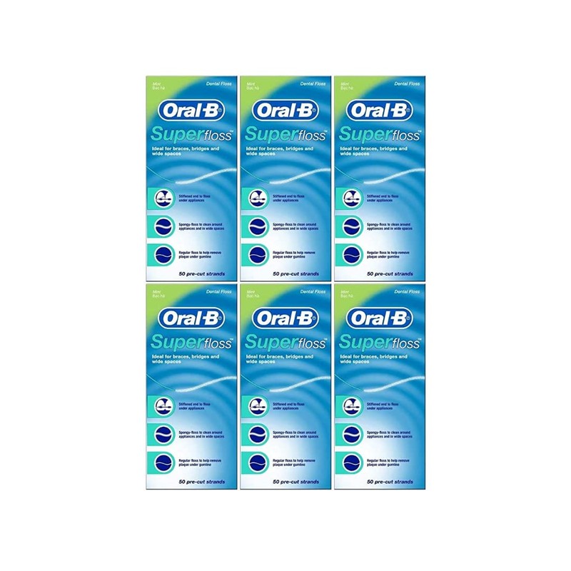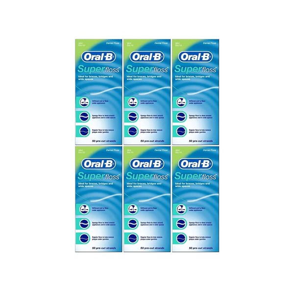 Oral-B Super Floss Mint Dental Floss for Braces Bridges - 50 Strips (Pack of 6)