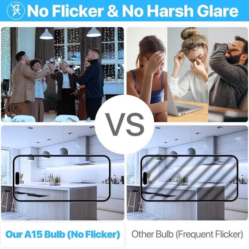 - 【Optimal Eye Comfort】 Our bulbs are engineered to provide a stable, flicker-free glow, safeguarding your eyes from strain and creating a more comfortable illumination for reading or work.