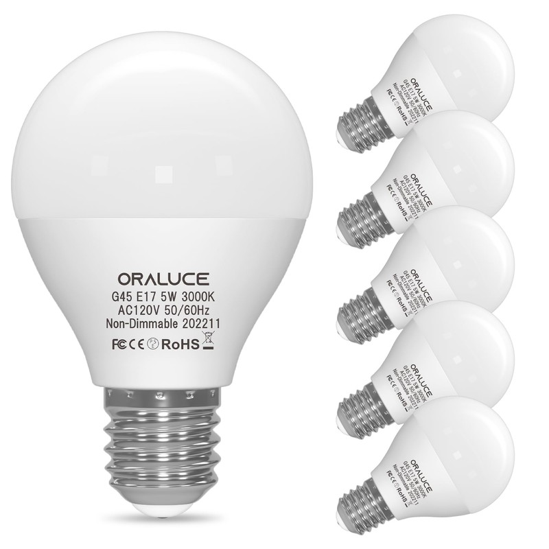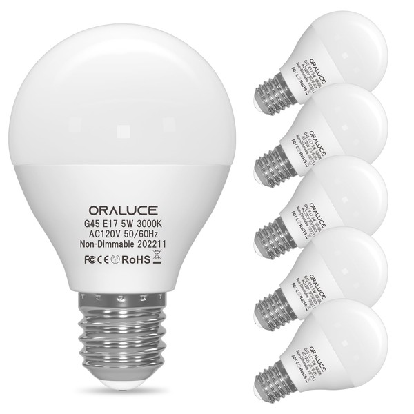 ORALUCE E17 LED Bulb 5 Watts Warm White 3000K, 40W Equivalent A15/G45 Globe Ceiling Fan Light Bulbs, 500 Lumens Non-Dimmable, 6 Pack