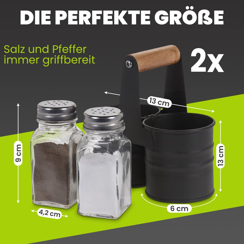 - Ideal for catering - with this set you can offer your guests the necessary spices to refine your freshly prepared dish with a little salt or pepper. A must-have for any modern restaurant or cool beer garden