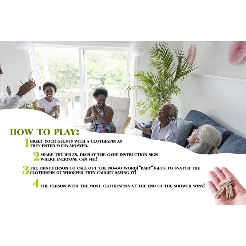 - 【Quality】The mini natural clothespins are made of high-quality raw wood, the ''Don't Say Baby'' game sign is made of thick coated paper, no frame required, can be reused, and is very environmentally friendly.Well worth money.