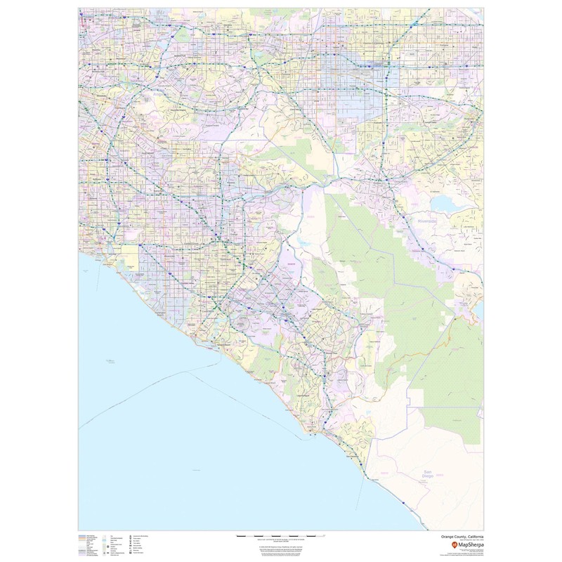 Orange County, California - 36" x 48" Laminated Wall Map