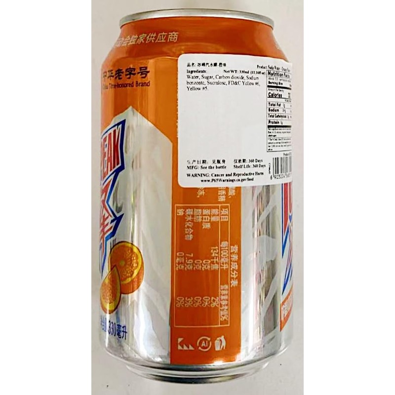 - AUTHENTIC CHINESE BEVERAGE: Ice Peak orange-flavored carbonated soft drink imported directly from China in convenient 330ml aluminum cans