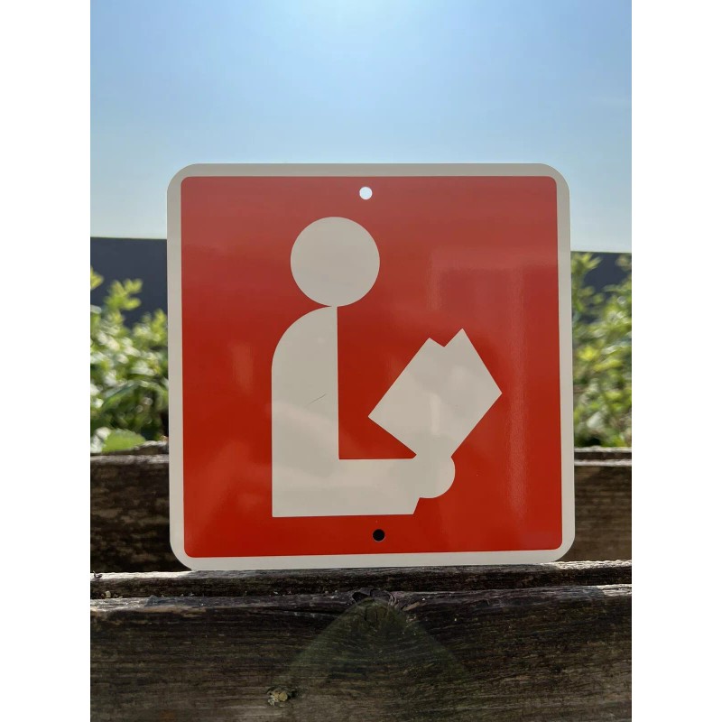 In addition to its functional use, this sign is also a decorative item with a reading theme. The material is sturdy and long-lasting, ensuring that this sign will continue to look great for years to come. Made in the United States, this metal sign is a high-quality addition to any collection of decorative collectibles or plaques.