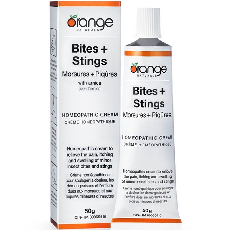 We may all love the out-of-doors but we don’t all love the critters that nibble on us when we’re outside enjoying nature. Inevitably each spring, summer or fall most of us will have a ‘run-in’ with a mosquito, a black fly, a spider, a deer fly or a wasp. That ‘run in’ may lead to a mild little itch or to a great deal of swelling, discomfort, inflammation, redness or burning. Orange Naturals Bites+Stings homeopathic topical cream will help you find quick relief from those inevitable run-ins with mother nature’s tiny but mighty insects. Keep a tube in your picnic hamper, your backpack, the baby’s diaper bag, the bow of your canoe or your jacket pocket.