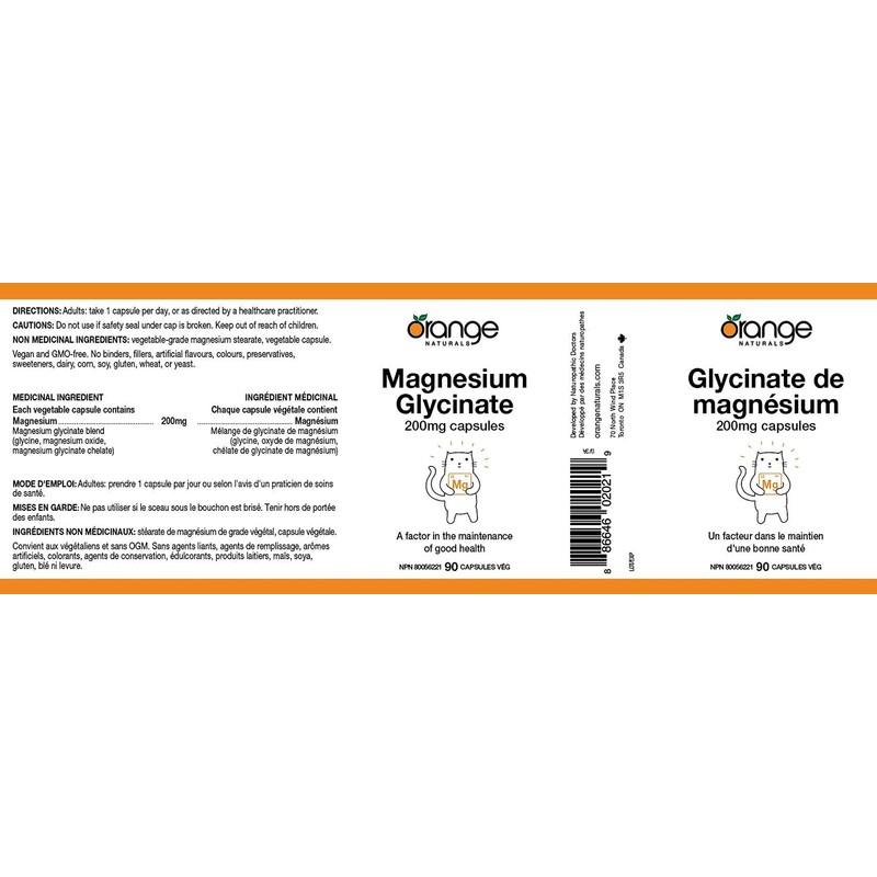 - High Absorption Formula - Orange Naturals Magnesium Glycinate is crafted to optimize absorption, delivering 200mg of pure magnesium bisglycinate per capsule, intended to support relaxation and muscle function effectively.