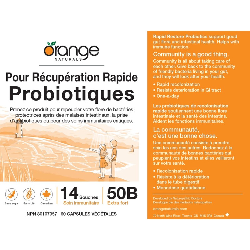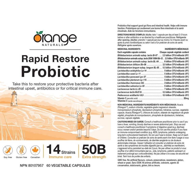 Orange Naturals - Rapid Restore Probiotic, 60 v-caps - Helps to Maintain and Support Immune Function - Promote a Favorable Gut Flora - Source of Probiotics