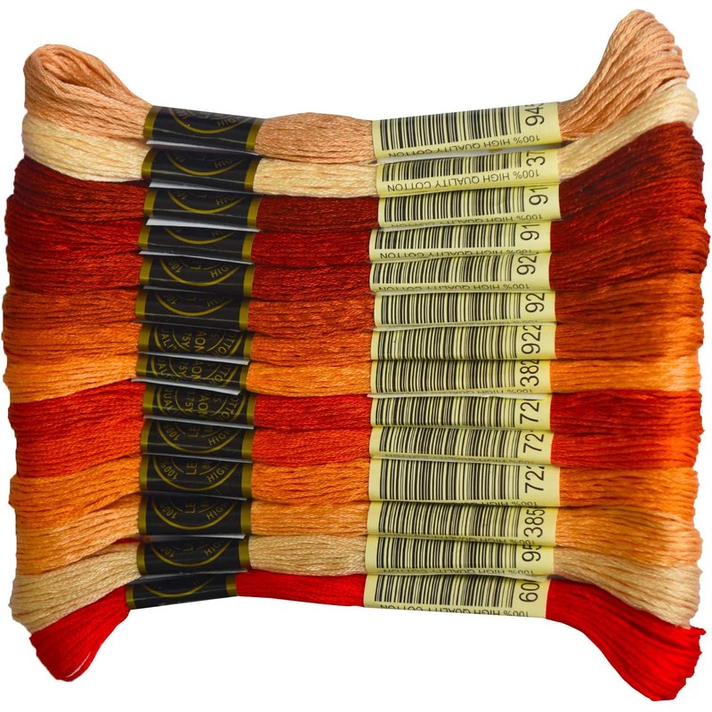 Orange-red Gradient Color Embroidery Floss - Cross Stitch Threads - Friendship Bracelets Floss - Crafts Floss - 14 Skeins Per Pack Embroidery Floss