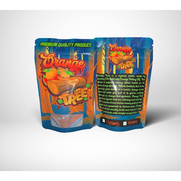Orange tree mylar bags 3.5g smell proof packaging x25
