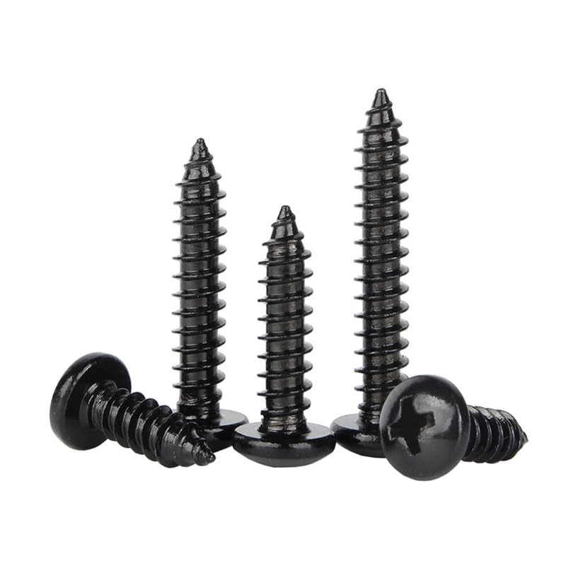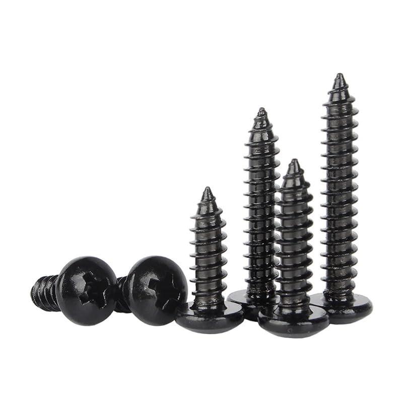 ORANXIN M4 x 16 mm, 50 pieces, round head, wood screws, 304 stainless steel, black zinc plated, self-tapping Phillips pan head, self-drilling screws