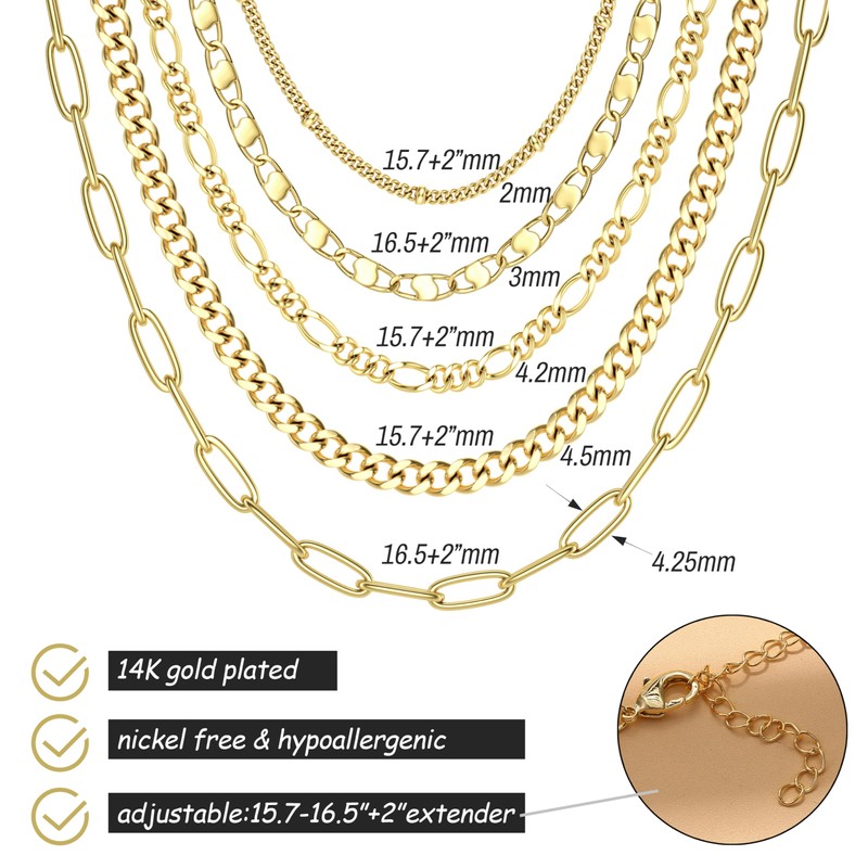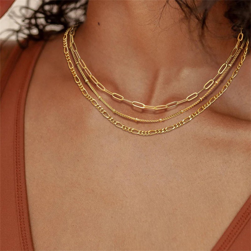 - 【Gold Layering Necklaces】The Gold Layered Chain Necklace is Made of 14K Gold Plated Brass to Ensure A Long-Lasting Finish , Stylish And Shiny. Each Layer of Chain is Individually Designed to Not Get Tangled And Comfortable to Wear. Layering Necklaces for Women And Men. Definitely A Presence That Can Add to Your Glamour.