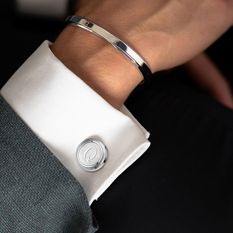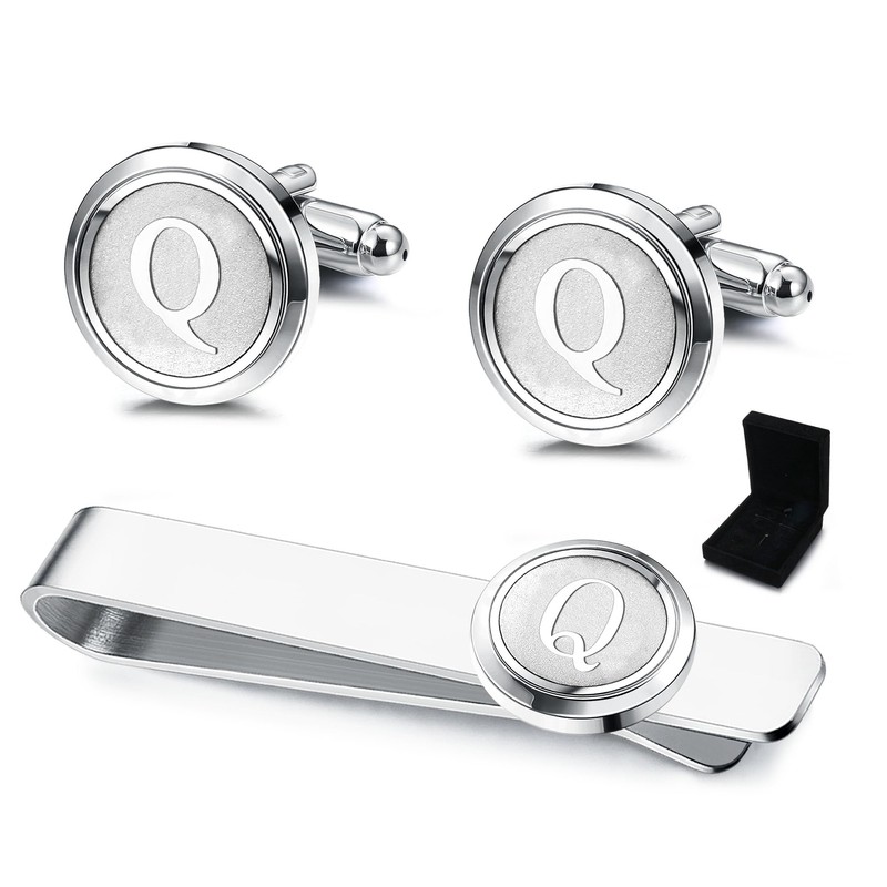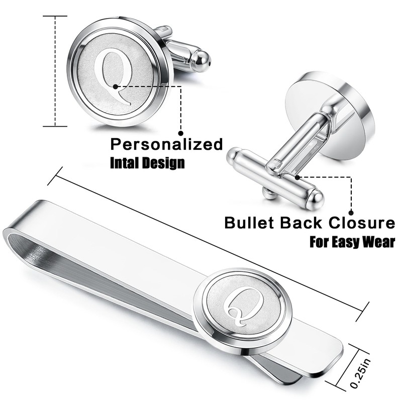 - Classic Men Accessories--One Order You Will Get 1Pairs Alphabet Cufflinks and 1Pcs Tie Bar,In a Black Gift Box.Personalized Initial Engraving Design,Special and Stylish.Easy to Match Your Business Shirts and Suits.