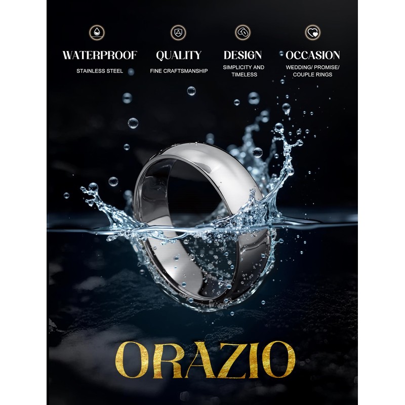 ORAZIO Mens Rings Stainless Steel Wedding Band for Men Women 6MM Silver Simple Domed Wedding Bands Ring High Polish Comfort Fit Size 10