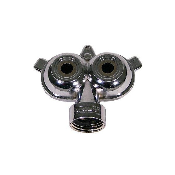 This zinc twin-circle Orbit water sprinkler is just right for spot watering lawn and garden areas. With a coverage area up to 30 feet in radius, this garden sprinkler head works with high or low pressure water systems making it easy to use and perfect for multiple lawn watering needs. As part of a lawn irrigation system or on its own, this twin-head yard sprinkler easily attaches to any standard water hose. Its durable zinc construction ensures many years of dependable watering use for all your garden or yard watering needs. Features and Benefits: Twin heads allow for more complete watering coverage, Durable metal construction guarantees many years of dependable watering, Covers areas up to 30 feet, Great for spot watering gardens and lawn areas.