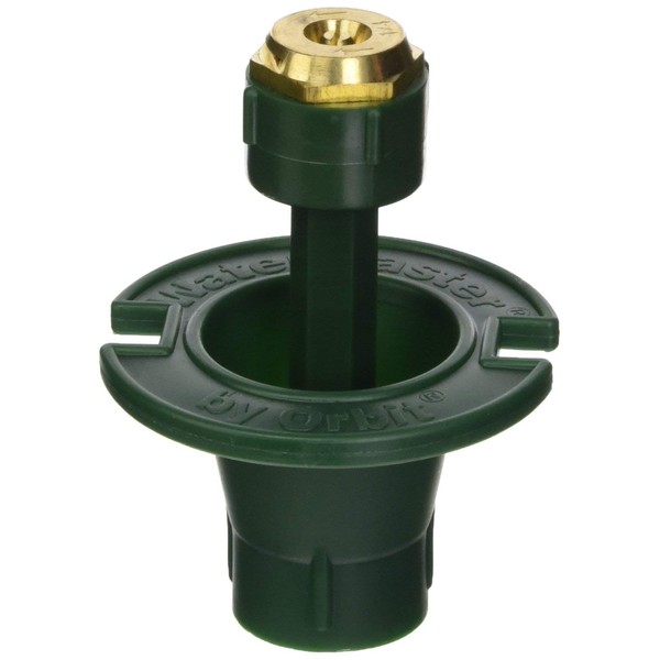 With a 1 3/4-inch pop-up height, this brass nozzle pop-up sprinkler head from Orbit covers areas with a radius from 10 to 15 feet. Circling a quarter pattern, its watering coverage is complete and even. Its body is constructed of durable plastic that allows this Orbit sprinkler to provide many years of dependable, hassle-free watering. The brass nozzle has a top screw that is used to adjust water flow and it is easy to use. With 1/2-inch male threading, this water sprinkler connects to a riser effortlessly. As part of a yard irrigation system or by itself for a small area, this plastic pop-up lawn sprinkler is affordable, simple to install and easy to operate.