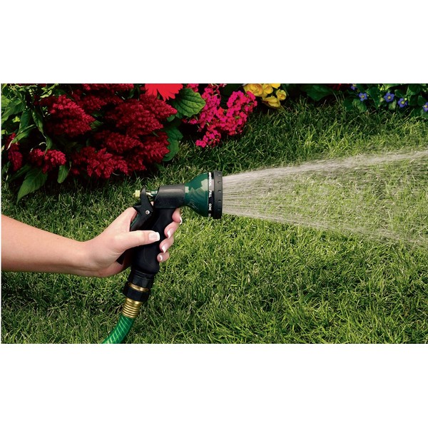 This water pistol has a soft-dial, self-cleaning turret guard and an insulated hand grip to help guard against a cold or hot handle. A rear trigger allows one-handed control of water flow and a locking feature maintains a constant, even spray. A non-corrosive exterior will provide many years of dependable yard-watering use. Attach it to any standard garden hose.
