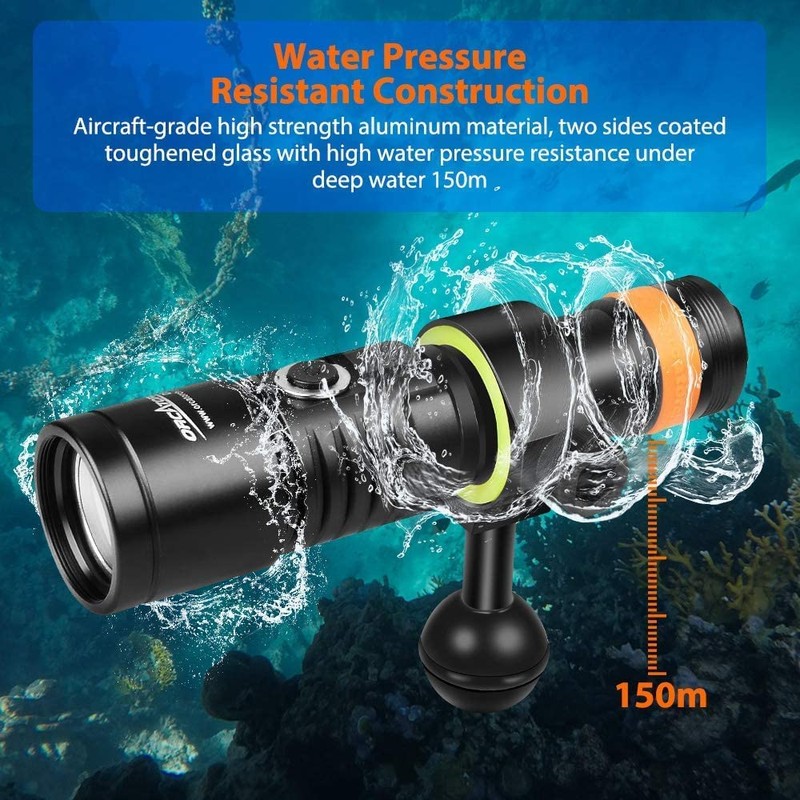 - Equipped with OrcaTorch ZJ18 Ball Joint Bracket: Packed along with diving ball joint bracket which make the D530V is suitable for underwater photography and supplementary lighting. Ball head can be mounted on the dive light or underwater sports camera. It has 360 degrees rotating fixed connection, then you have more freedom to adjust the direction of the diving video light.